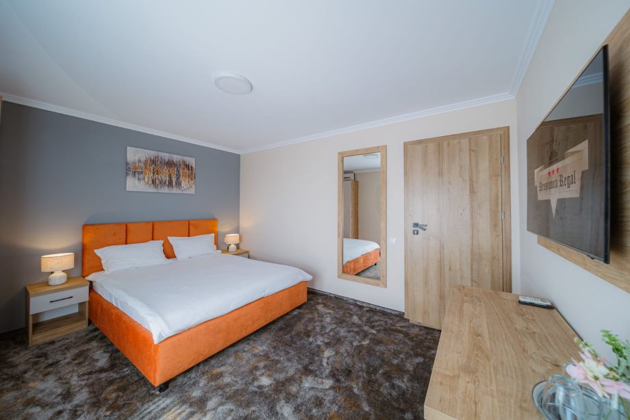 La Pensiunea Regal, vă oferim camere duble confortabile și spațioase, perfecte pentru o ședere relaxantă în Băile 1 Mai. Fiecare cameră este dotată cu facilități moderne pentru a vă asigura un sejur plăcut și lipsit de griji.